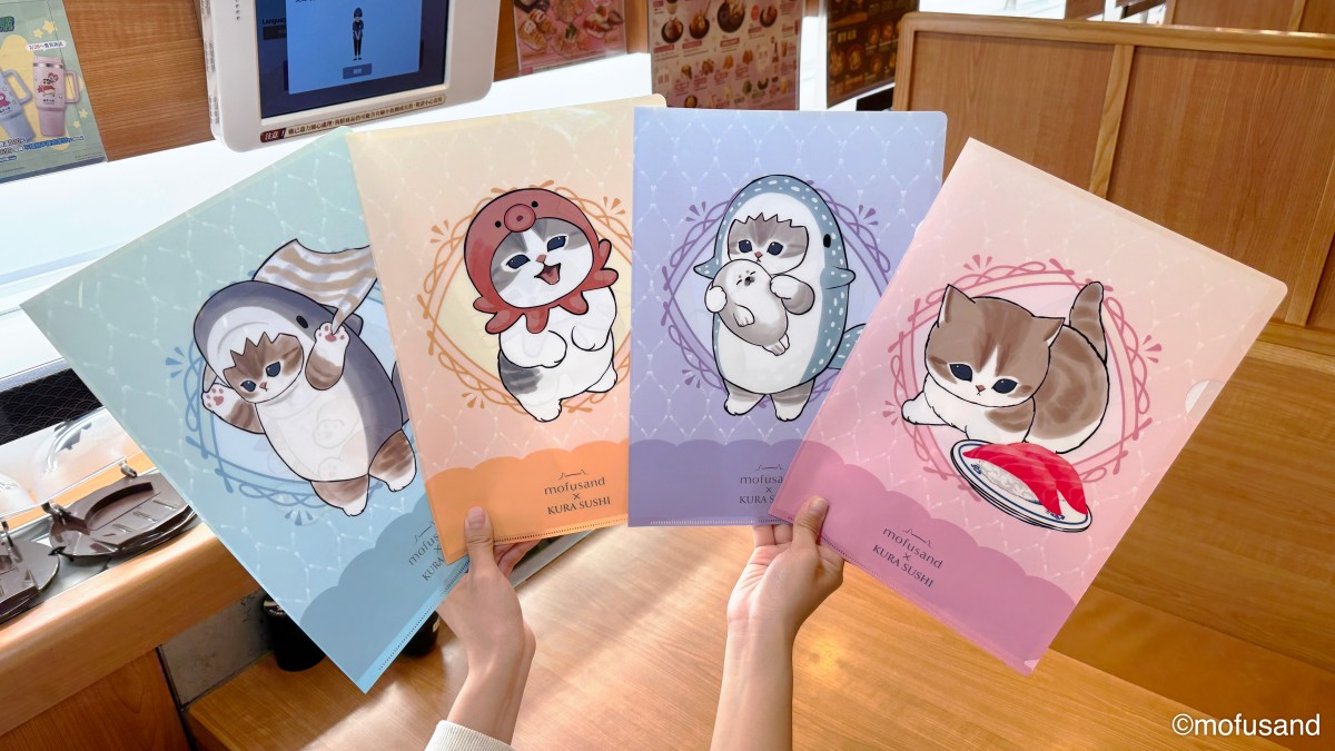 首波滿額贈活動也將同步開跑,凡於全台店舖消費滿1,000元,追蹤藏壽司 FB、加入 LINE 好友並綁定會員,即可獲得「原創透明文件夾」乙個。4款設計包含淺藍鯨鯊喵、鯊魚喵、章魚喵與貪吃喵,不管哪款都可愛又實用。