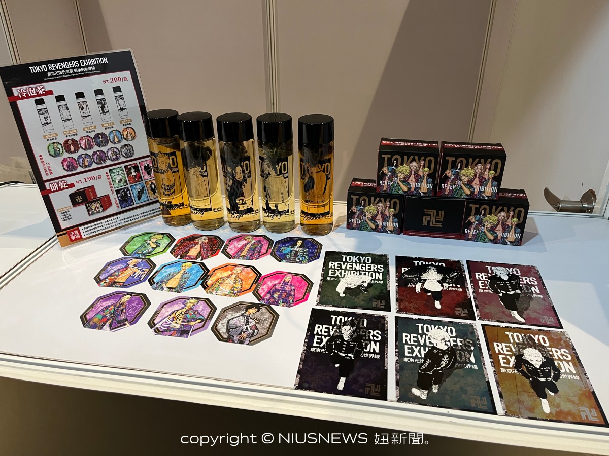 此外,展外還有 Café stand 可以購買特製輕食!5款冷泡茶使用精緻印刷玻璃瓶裝,不僅瓶身設計帥氣時尚,還能重複使用,購買即贈隨機款角色杯墊。另有以展覽主視覺設計盒身的綜合手工餅乾,買就送隨機款彩鑽明信片。