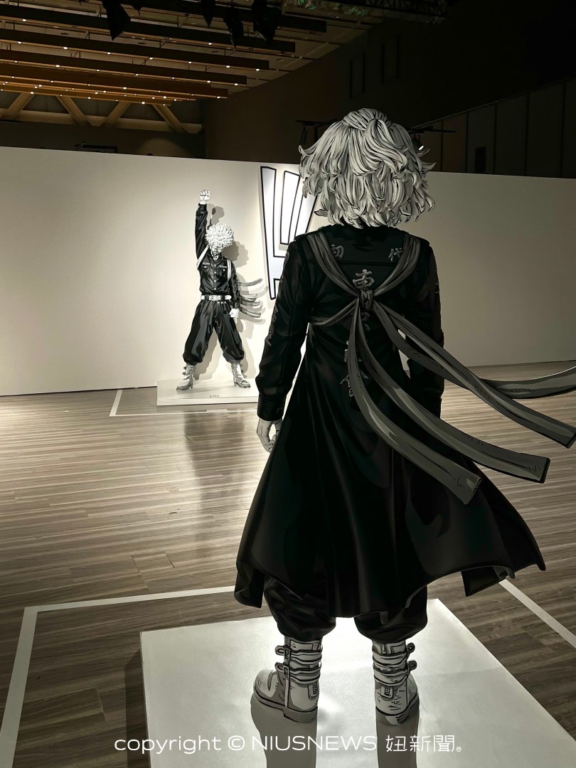 而在角色立牌的右方,更獨家展示了武道和麥基(佐野萬次郎)的等身服裝!無論是剪裁設計、花紋圖樣,從頭到腳的完整細節,都能讓大家仔細欣賞。