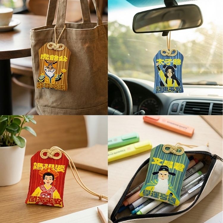 這款護身符真的太Q啦!每個都有經過北港朝天宮的爐加持過,設計還融合了「點點善」的溫潤插畫風格,讓傳統信仰瞬間變得超時尚、超可愛!總共有四款角色,每一款都代表著人生中最重要的祝福: